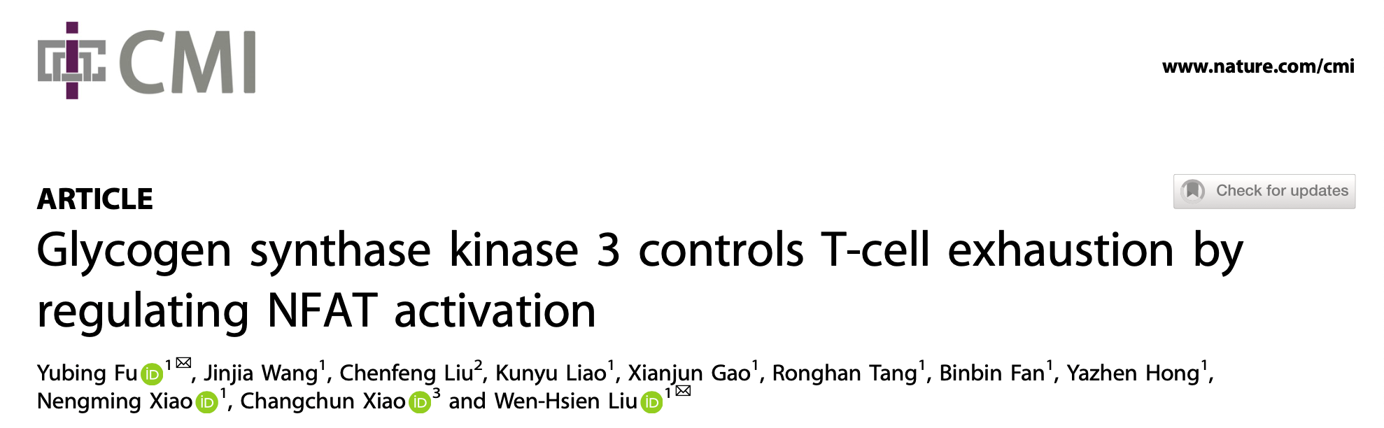 8月9日,刘文贤课题组在免疫学期刊《Cellular & Molecular Immunology》发表题为“Glycogen synthase kinase 3 controls T-cell exhaustion by regulating NFAT activation”的研究论文,该研究揭示了GSK3在调控T细胞耗竭发生过程中的重要调控作用。