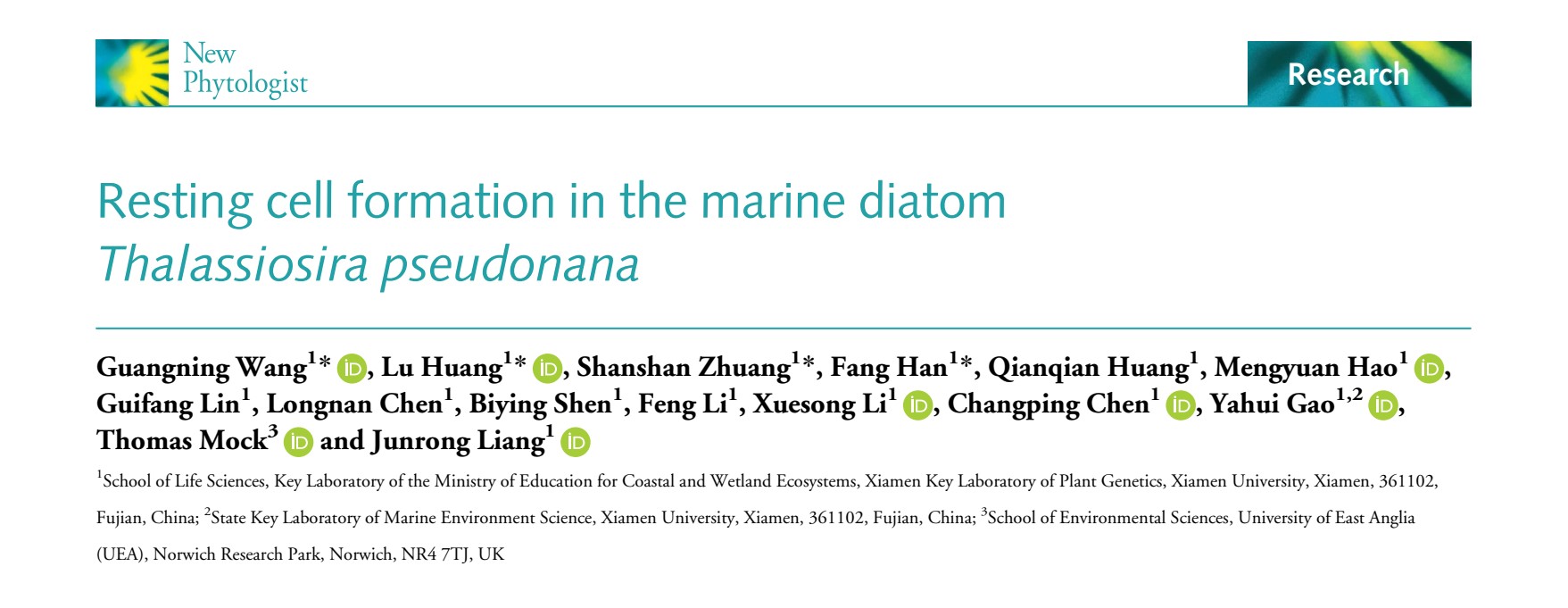 厦门大学梁君荣教授及东英吉利大学Thomas Mock教授为该论文共同通讯作者,博士生王广宁,黄璐,已毕业硕士生庄姗姗,韩芳为共同第一作者。本研究得到国家自然科学基金项目(42076115 和 41576138)的资助。