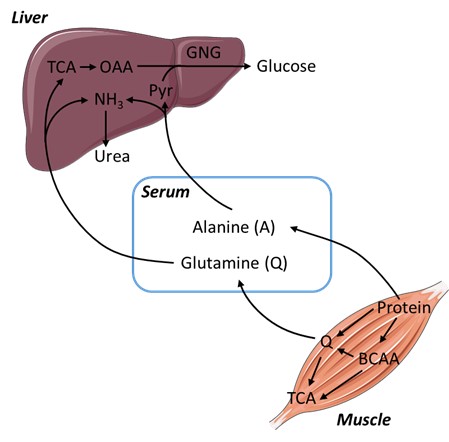 (TCA:三羧酸循环;BCAA:支链氨基酸;GNG:糖异生;OAA:草酰乙酸;Pyr:丙酮酸)