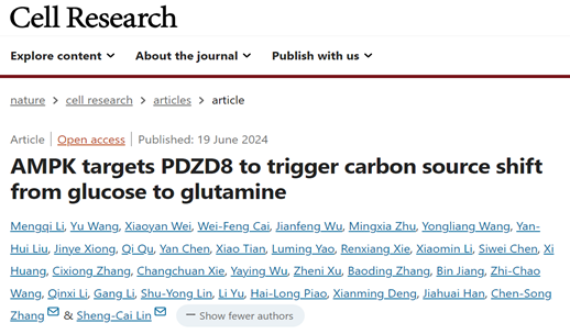6月19日,林圣彩课题组在Cell Research发表了题为“AMPK targets PDZD8 to trigger carbon source shift from glucose to glutamine”的文章,阐述了促进谷氨酰胺代谢的机制。他们发现,在低葡萄糖条件下,AMPK能够通过磷酸化一个新底物——PDZD8(PDZ domain-containing protein 8),促进机体对谷氨酰胺这一关键氨基酸的氧化利用。从而“补全”了AMPK促进氨基酸作为葡萄糖的一类替代碳源的机制的拼图。