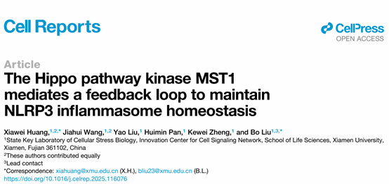 近日,刘波课题组在Cell Reports发表题为The Hippo pathway kinase MST1 mediates a feedback loop to maintain NLRP3 inflammasome homeostasis的研究论文。该研究揭示Hippo信号通路核心激酶MST1介导了一条负反馈环路,从而调节NLRP3炎性小体以及机体炎性反应稳态。