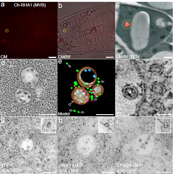 图1. 拟南芥根细胞中植物特有球形囊泡从多囊泡体出芽形成