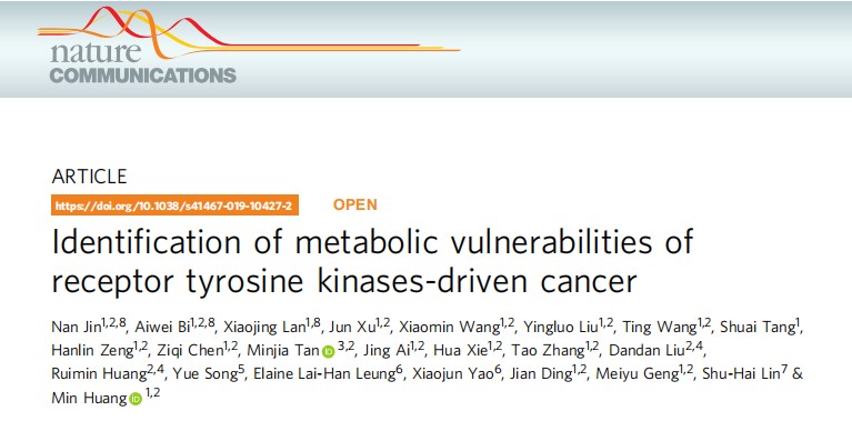 2019年6月20日,我院林树海教授课题组在《Nature Communications》上合作发表题为“Identification of metabolic vulnerabilities of receptor tyrosine kinases-driven cancer”的研究论文,报道了受体酪氨酸激酶驱动下的代谢偏向性和代谢抑制剂的个体化治疗效果。