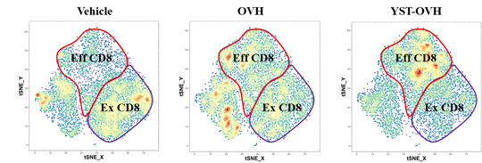 YST-OVH治疗显著提高肿瘤内效应CD8+T细胞的浸润水平并降低耗竭性CD8+T细胞的浸润水平