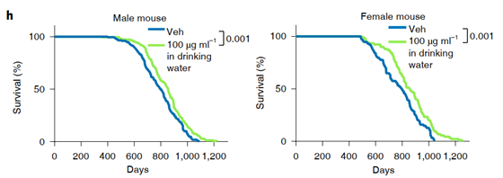 图3. “辟谷精”可以有效延长小鼠的寿命