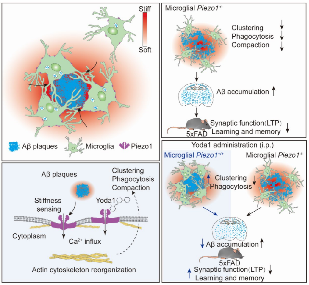 综上所述,本研究从机械力生物学角度揭示了小胶质细胞Piezo1介导的信号传导在AD病理过程中的保护作用,拓宽了小胶质细胞与AD病理进程紧密相关的认识,也为AD的药物研发提供了潜在的新靶点。