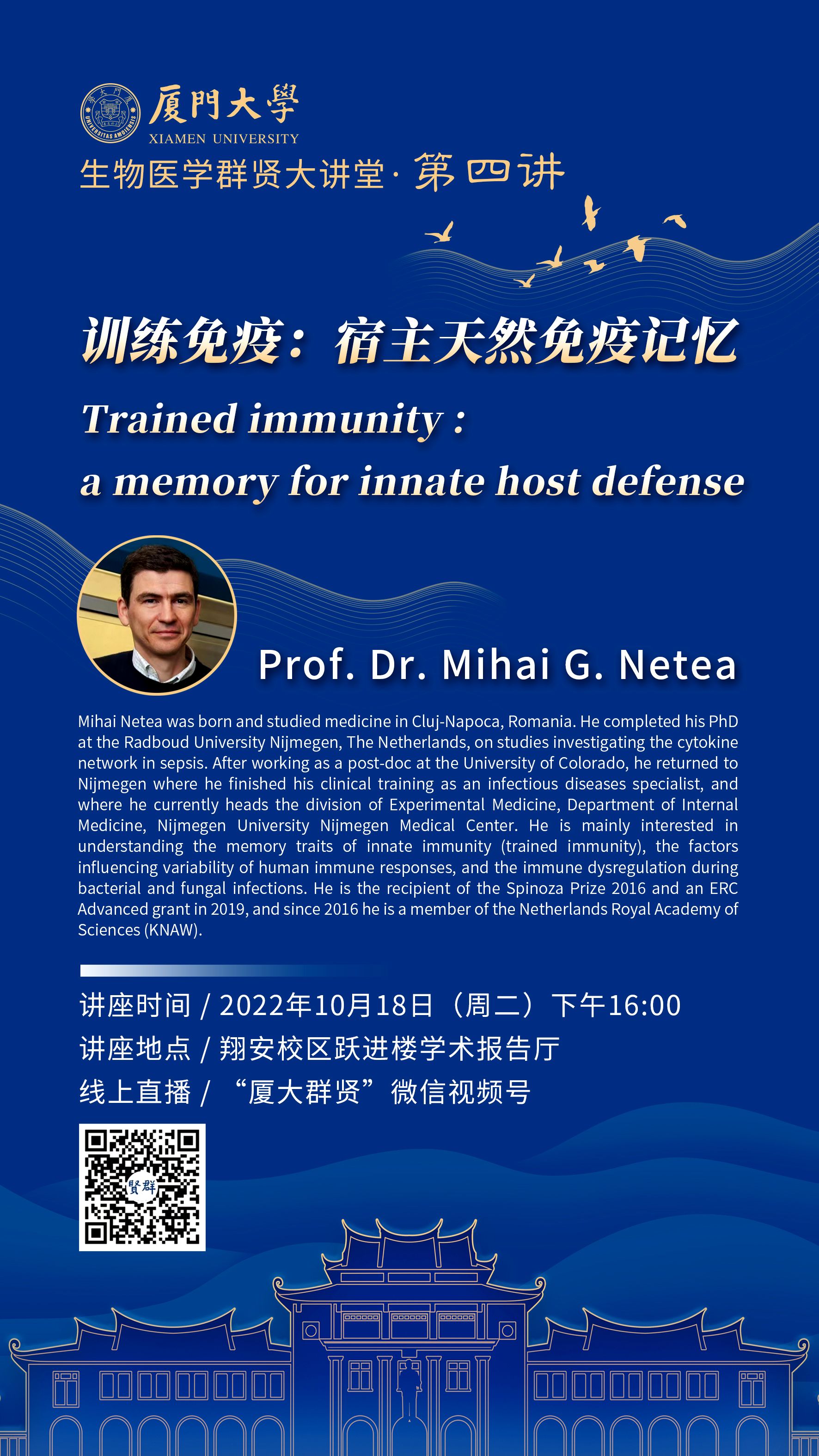 Mihai Netea was born and studied medicine in Cluj-Napoca, Romania. He completed his PhD at the Radboud University Nijmegen, The Netherlands, on studies investigating the cytokine network in sepsis. After working as a post-doc at the University of Colorado, he returned to Nijmegen where he finished his clinical training as an infectious diseases specialist, and where he currently heads the division of Experimental Medicine, Department of Internal Medicine, Nijmegen University Nijmegen Medical Center. He is mainly interested in understanding the memory traits of innate immunity (trained immunity), the factors influencing variability of human immune responses, and the immune dysregulation during bacterial and fungal infections. He is the recipient of the Spinoza Prize 2016 and an ERC Advanced grant in 2019, and since 2016 he is a member of the Netherlands Royal Academy of Sciences (KNAW).