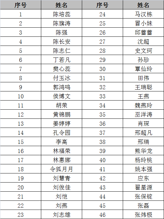 根据学院研究生培养方案和博士生中期考核相关规定,学院于2018年12月21日组织中期考核小组对62名2017级博士研究生进行中期考核。中期考核小组秉承公正原则,根据博士生的研究工作进展、汇报和答疑的具体情况以及研究潜力,通过充分讨论、严格评议,确定令狐月月等46位博士生通过2017级博士生中期考核,成绩合格,其余16位2017级博士生本次中期考核不合格。本次考核不合格的博士生将在6个月后按学院博士生中期考核相关规定进行再次考核、博转硕或退学处理。