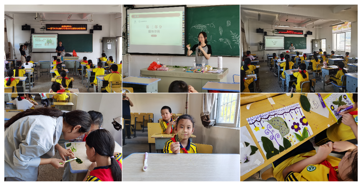 厦门大学生命科学学院五育花开实践队、言传“生”教科普支教实践队联合为中心小学的同学们带来生物学科普支教。实践队5位支教成员分别为小学同学们讲解了植物学的基本知识,带领他们学习、实践了叶脉书签的制作并引导他们进行植物作画创作。同学们听得十分认真,也富有积极性,不但在动手中创作了漂亮的手工作品,更加强了相关知识的吸收。实践队为同学们讲解“身体的奥秘——免疫系统”这一内容,并设置有奖问答回顾课堂知识,增强了同学们对身体是如何抵御病原体的认识。同学们积极踊跃地回答问题,在欢乐轻松的氛围中潜移默化地实现了知识的传递,通过轻松有趣的方式科普传播身边的生物学知识,在山村小学播下生物学的种子,点燃科研的热情,让兴趣成为山村小学小朋友最好的老师。