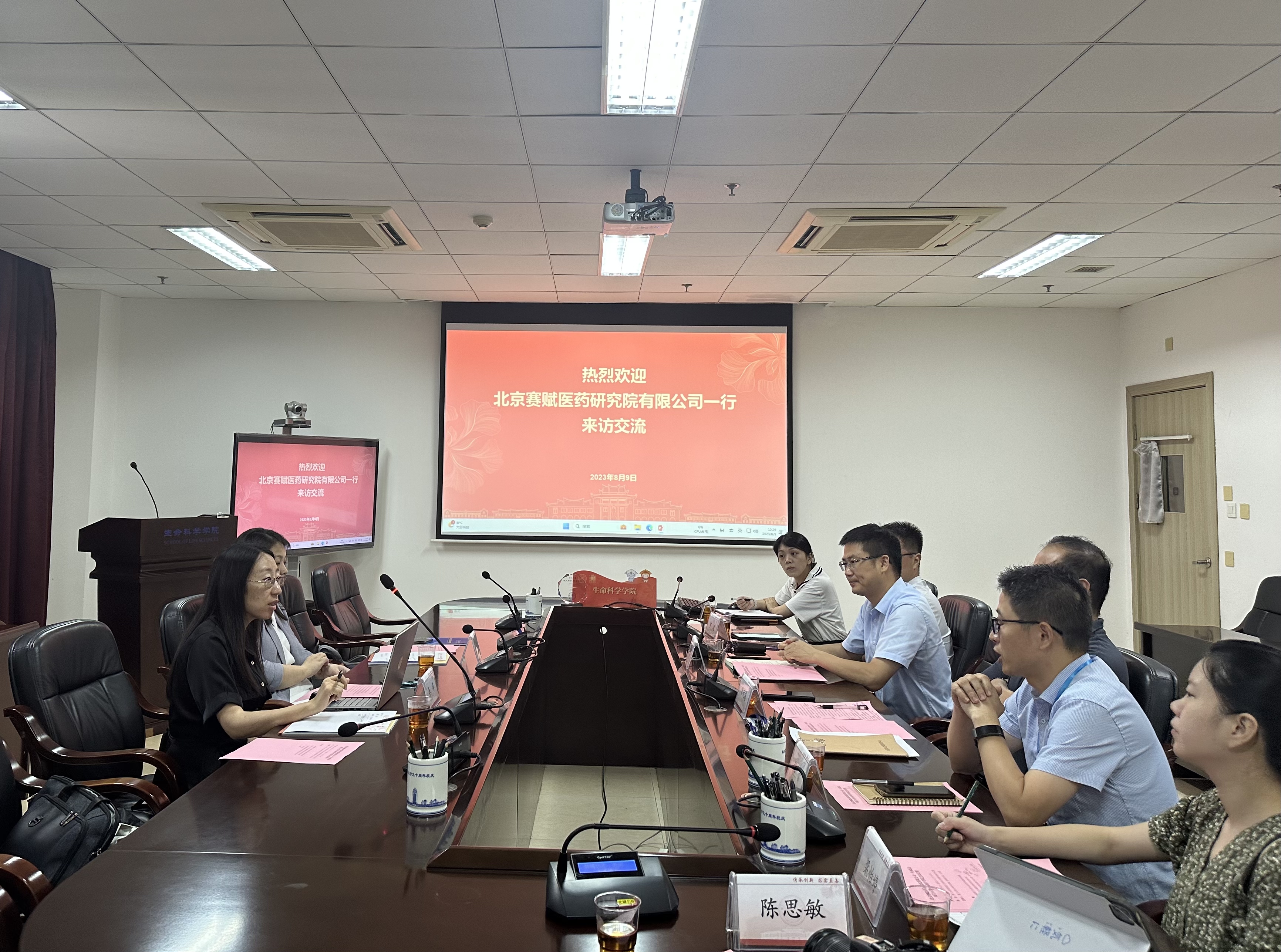 李萍详细介绍了北京赛赋医药研究院有限公司整体情况、特色平台及服务能力,双方就潜在的合作方向进行了深入探讨。