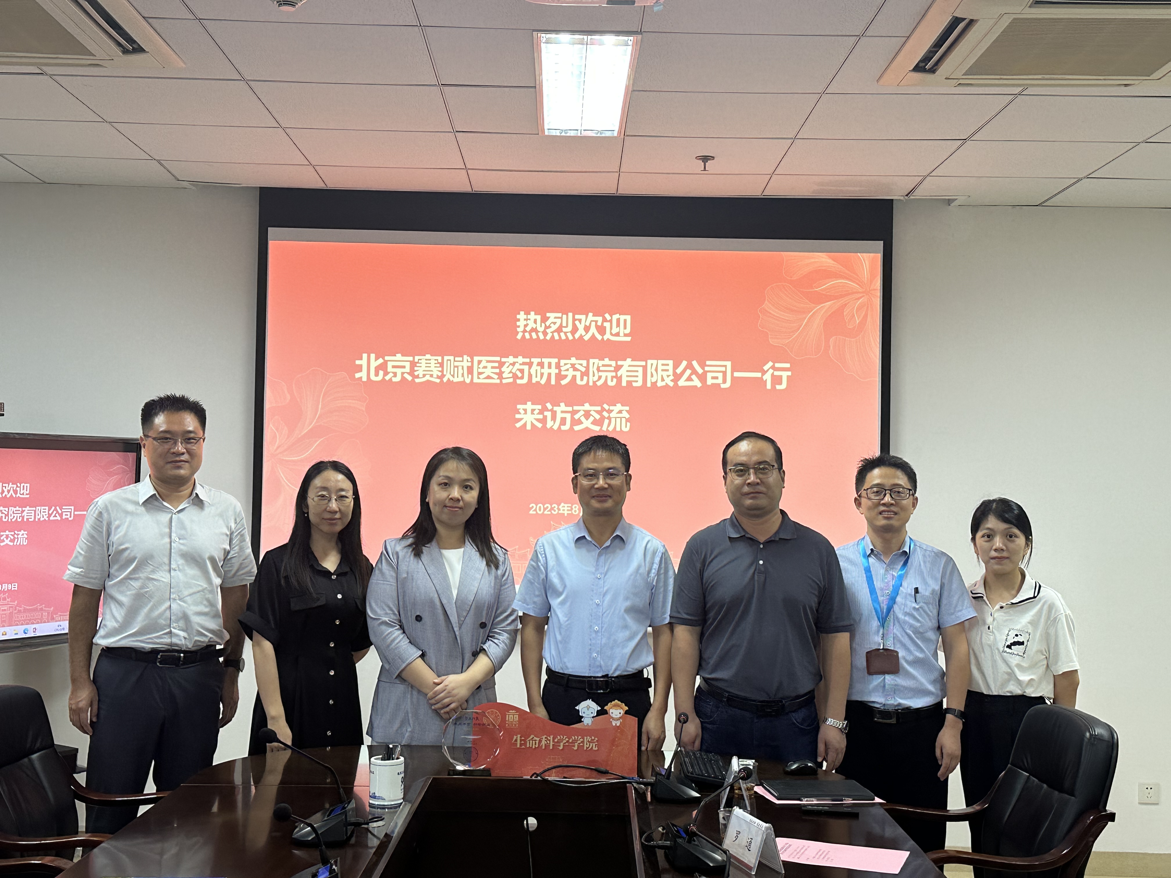 8月9日上午,北京赛赋医药研究院有限公司副总裁、市场及商务管理中心总经理李秀秀,市场及商务管理中心市场总监李萍一行来访我院,学院党委书记马进龙、党委副书记乐无恙,生物医药转化研究院办公室主任罗通、实验服务中心副主任张蕾等相关老师参加座谈交流。会议由乐无恙主持。