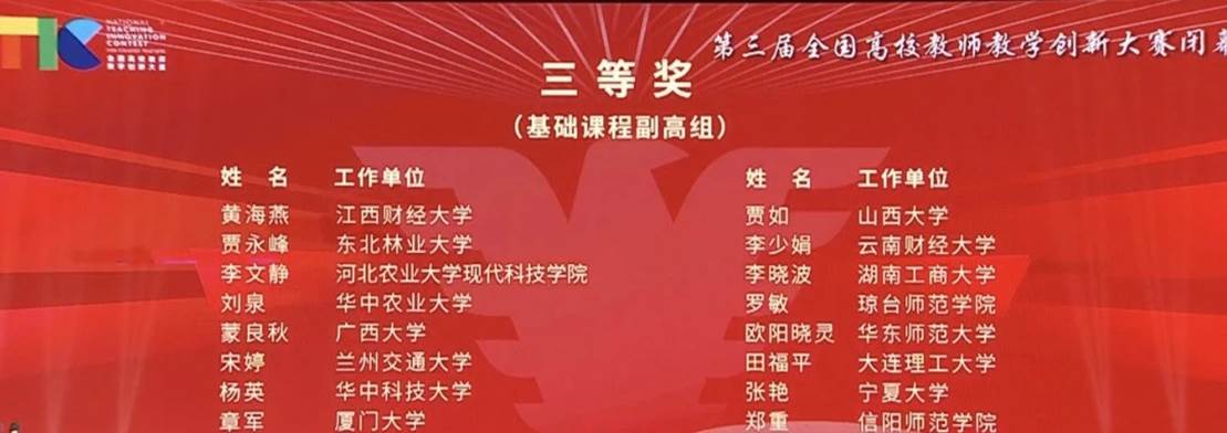 2023年8月22日,由教育部高等教育司指导、中国高等教育学会主办的第三届全国高校教师教学创新大赛在浙江大学落下帷幕。经过激烈角逐,我院章军副教授从全国赛1701名教师(含团队成员)中脱颖而出,入围网评环节并获基础课程副高组三等奖。
