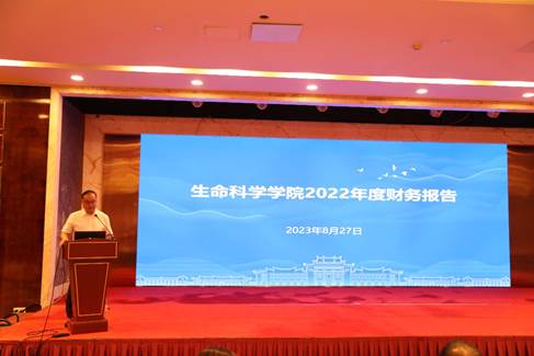 学院党委副书记乐无恙作《2022年财务年度报告》,介绍学院经费整体收支情况、院控经费(统筹)收支情况、下一年度收入与支出预算。