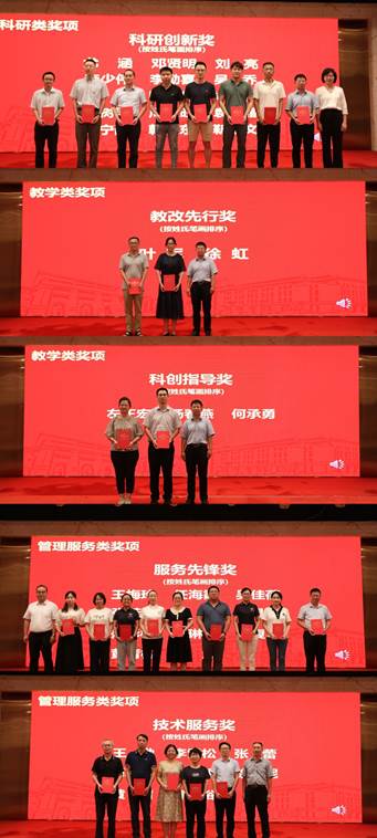 在本次2023年学院奖教金颁奖仪式上,共有41位教职员工荣获科研创新奖、青年学者奖、教改先行奖、科创指导奖、优秀管理奖、服务先锋奖、技术服务奖,鲜活地展现了过去一年,学院教职员工干事创业、创先争优的热情和干劲。