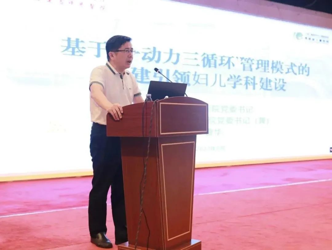 为进一步推动医研合作交流,本次会议邀请福建省立医院、福建省儿童医院党委书记曹华作题为《基于“一动力三循环”管理模式的党建引领妇儿学科建设》的报告。曹书记以人体供血动力源与循环系统为例,生动阐述了如何以党建引领为动力源,在决策环、创新环、目标环的三循环作用下,推动妇儿学科的高水平发展。