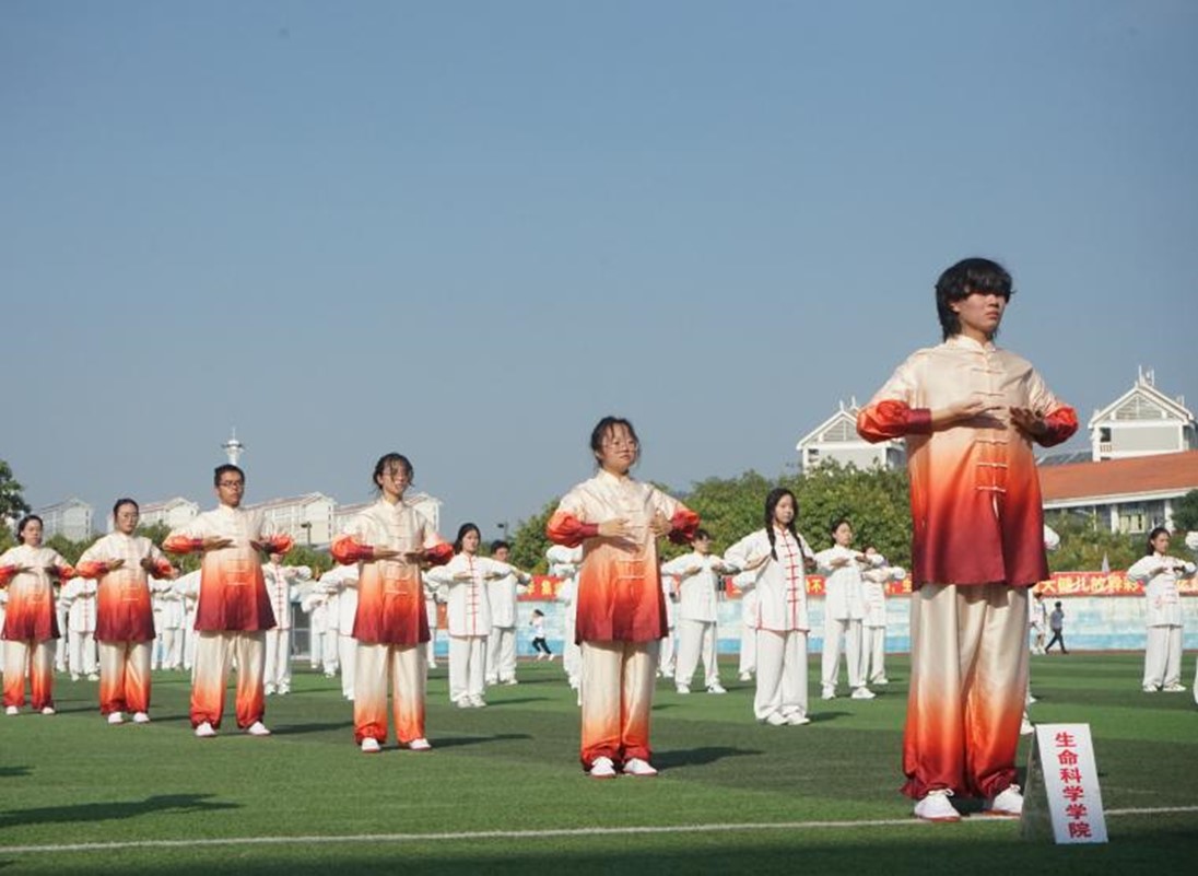 入场式结束后,进行了八段锦项目的比拼。在比赛中,我院学子形神合一、身心共振,举手投足间显现出八段锦刚柔并济的特点,一招一式间呈现了生科学子对八段锦动作要领的精准把握,也为阳光正好的厦园增添了一道绚丽的风景。