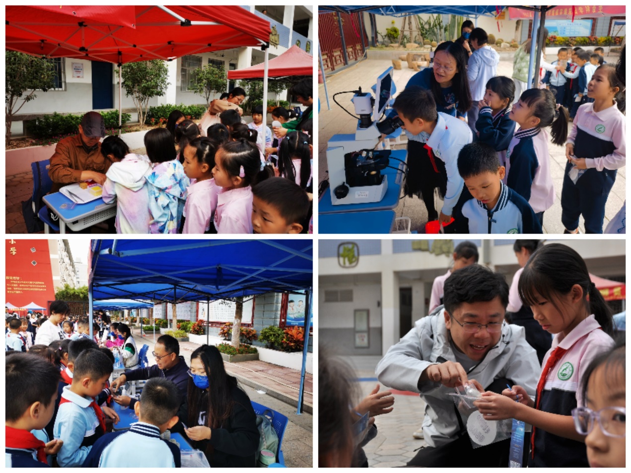 本次科普活动围绕“生物的奥秘”这个主题,中心共组织设计了四个项目,分八个场地进行活动,分别为“精彩的显微世界”“谍报员初体验”“指尖上的微生物”“向上吧!双螺旋!”,通过动手实验,讲解及游戏等形式向小学生们全方位展示了生命科学的奇趣奥秘,激发了他们探索的热情,受到极大的欢迎。