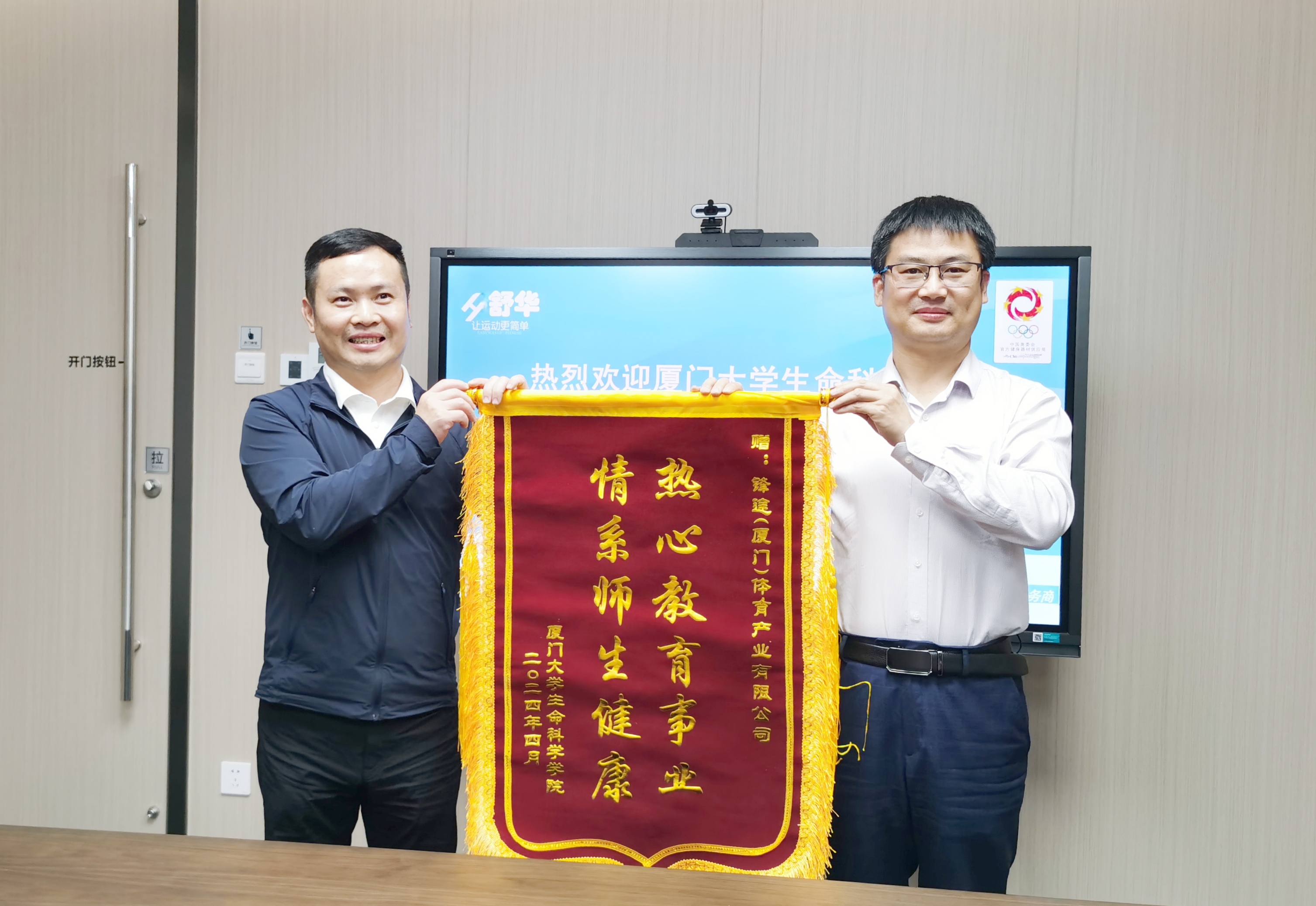 近日,锋途(厦门)体育产业有限公司为我院捐赠价值10万元的健身器材及改造设施,以支持我院教职工更好开展体育锻炼。为进一步促进与捐赠企业的合作交流,4月25日下午,学院党委书记马进龙、党委副书记徐莹、办公室主任吴佳蓓、工会主席黄青松一行人走访锋途(厦门)体育产业有限公司,与公司总经理庄伟韬、财务总监华顺英、运营总监郭皛溧、销售总监陈耿青进行了深入交流。