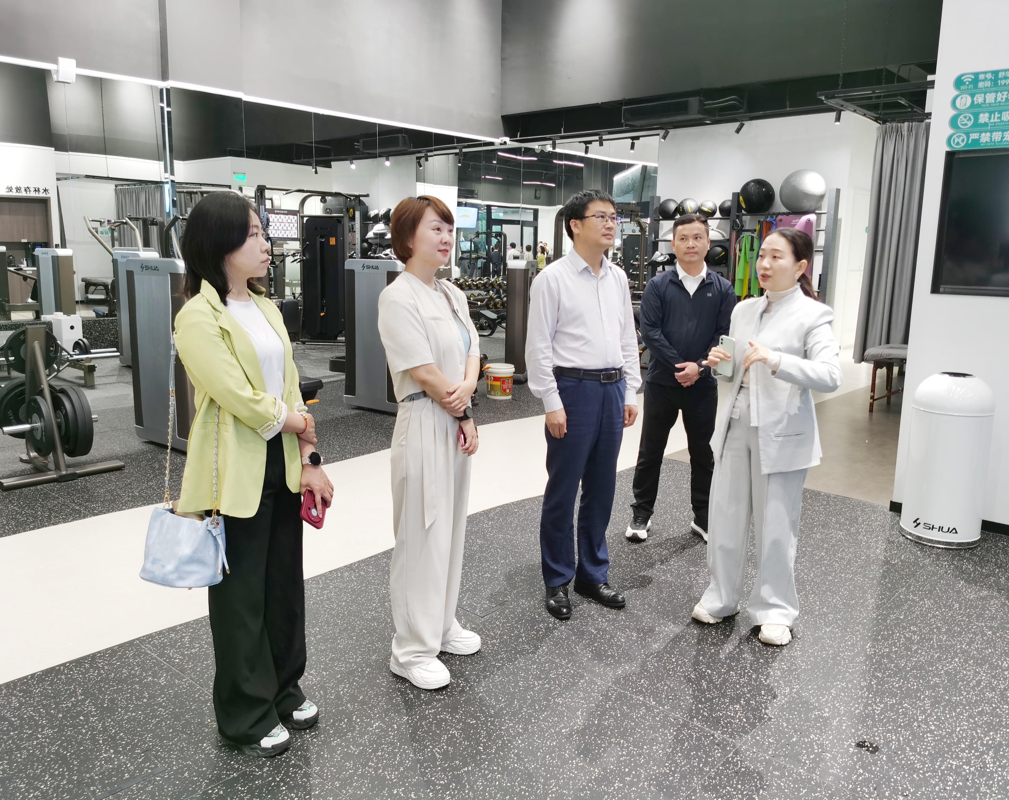 一行人首先参观了位于轻工大厦的舒华健身房,全面了解舒华体育创新性的体育器材设施和前沿的运动服务理念。