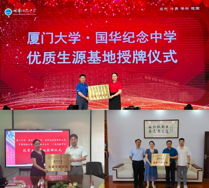 为进一步加强厦门大学与广东优秀中学的交流与合作,共同做好优秀学生的培养衔接,6月26日至27日,招生组还赴各个中学开展座谈交流会,为广东实验中学、国华纪念中学、广州市第七中学授予“厦门大学优质生源基地”牌匾。