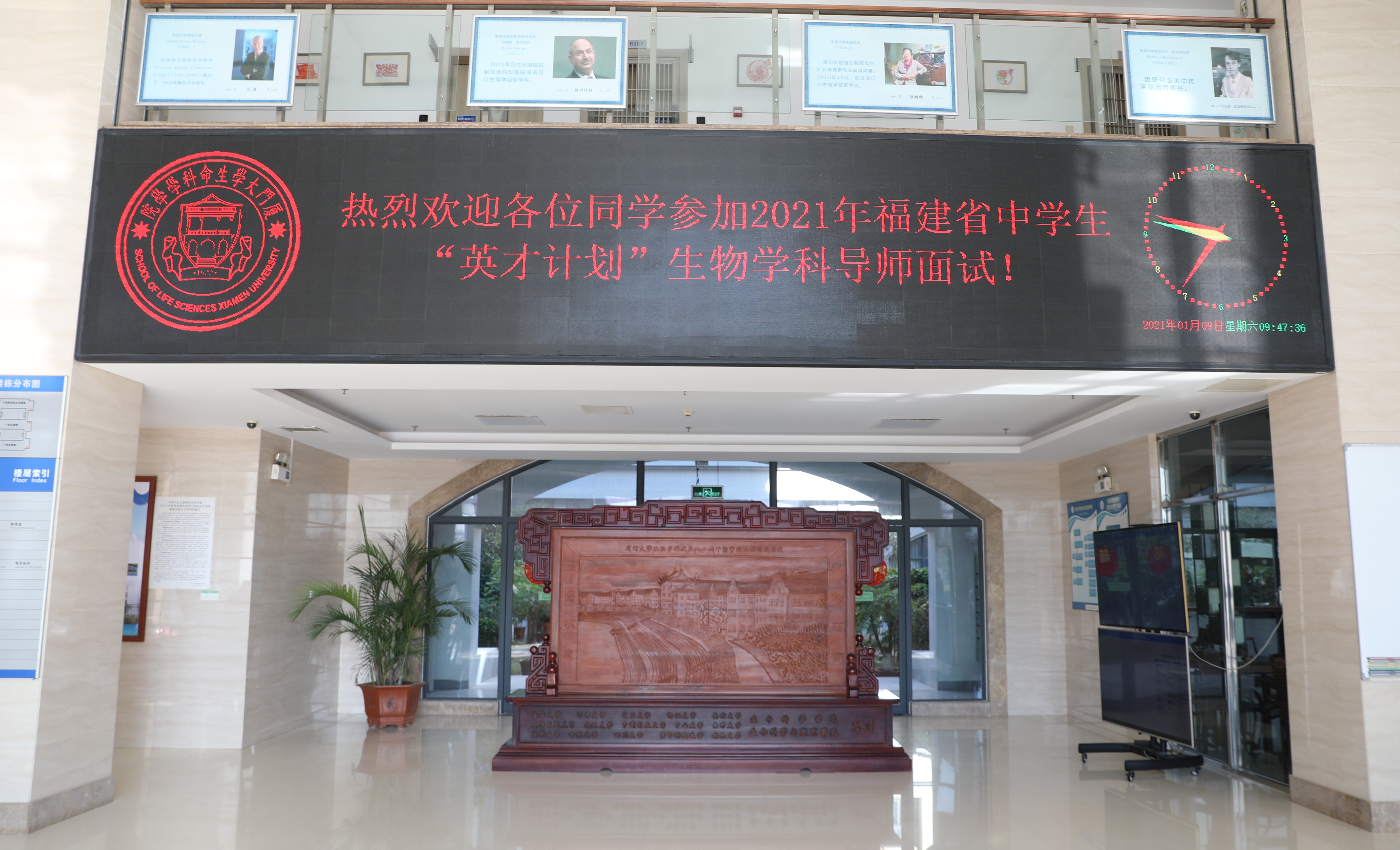 随后导师分组面试有序展开。生物学科本年度的英才导师是左正宏教授、俞春东教授、袁吉锋教授、毛开睿教授。来自福建各地重点中学的考生按照考号紧张而又有序地进入面试会场。有些同学在走廊里紧张地来回踱步,有些同学在会议室安静地学习等待。由于本次参与面试的同学较多,面试持续时间较久。最终录取情况将由学校上报省科协确定与公布。