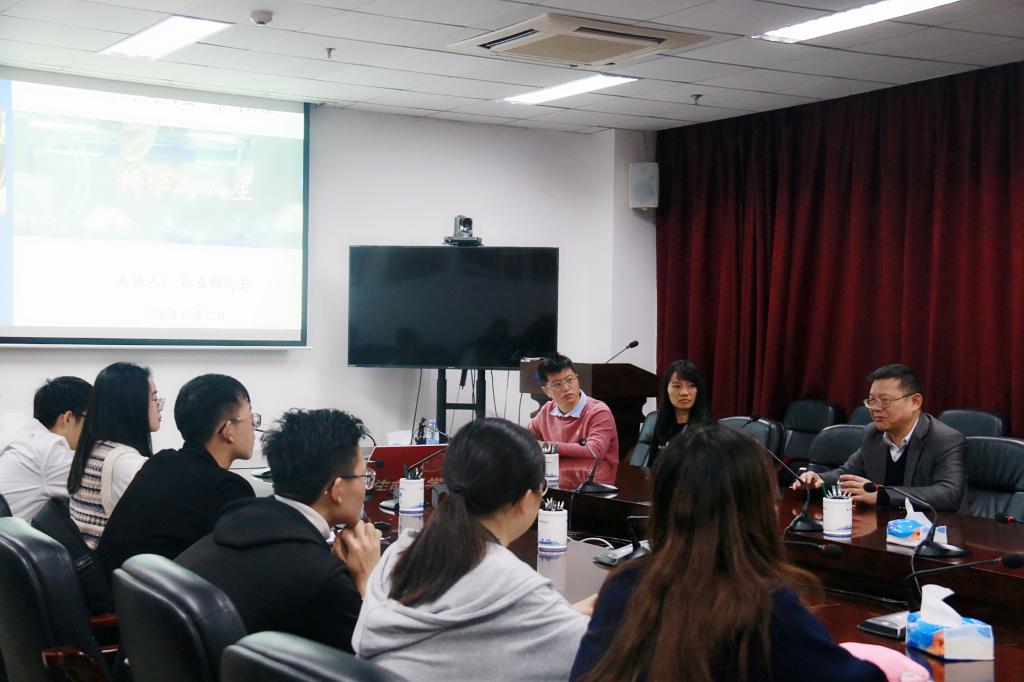 2020年12月22日上午,山东大学微生物技术国家重点实验室主任、微生物技术研究院院长、欧洲科学院院士及德国国家工程院院士张友明教授应邀参加我院“科学与人生”系列讲座,讲座由生命科学学院团委副书记江子扬主持,辅导员周怡昕及本科生和研究生代表参加此次讲座。