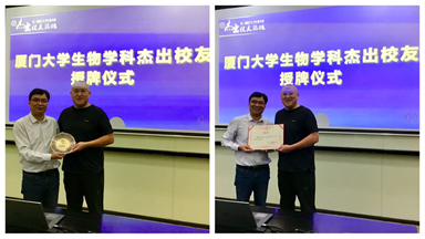 11月4日,学院首先拜访了1996级校友崔鹏所创办的菲鹏生物股份有限公司,受到了崔鹏校友的热情接见。左正宏从总体方案、筹备计划及具体进展等方面介绍了百年校庆院庆工作筹备情况。他表示,校友们所取得的成就关系着学院的声誉和社会影响力,学院期待通过与菲鹏共建实习基地、加强科研合作、推动成果转化等方式,进一步深化在科技研发、实习实践、人才招聘等方面的合作,共同促进学院各项事业蓬勃发展。崔鹏表示感谢学院多年的栽培之恩,作为回馈自己也将捐资一百万成立菲鹏专项奖学金用于支持学院人才培养。会后左正宏向崔鹏校友颁发了“厦门大学生物学科杰出校友纪念牌”与“厦门大学生物学科百年庆典顾问委员”聘书。