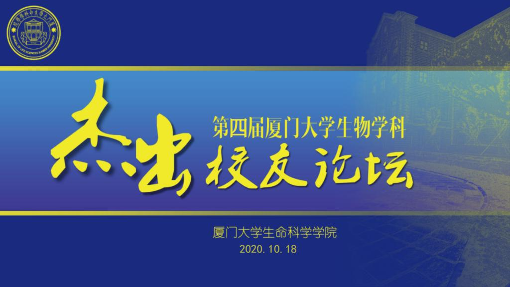 天朗气清,惠风和畅。群贤毕至,少长咸集。10月18日下午,学院与厦门校友会生命科学分会以及新成立的福州校友会生命科学分会一起携手举办第四届厦门大学生物学科杰出校友论坛,这是首次在校外举办的校友论坛。本届校友论坛的主题是“创新的力量”,邀请到两位来自不同行业的优秀校友,结合个人从业、创业经历谈谈各自对创新的理解,论坛由2009级生物技术专业林巧玉校友主持。