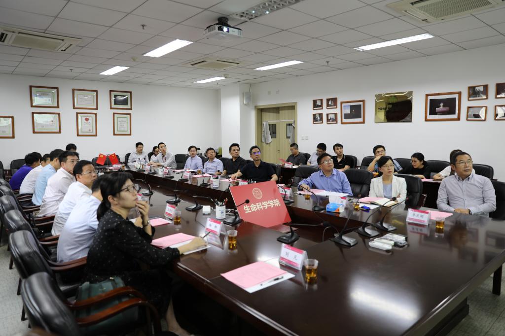 学校各职能部门负责人,副校长、生命科学学院院长周大旺,学院党委书记左正宏、党委副书记葛郝锐、葛学凤,副院长李勤喜、李博安,学院各系主任、省部级平台负责人参加了调研会议。