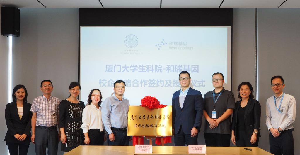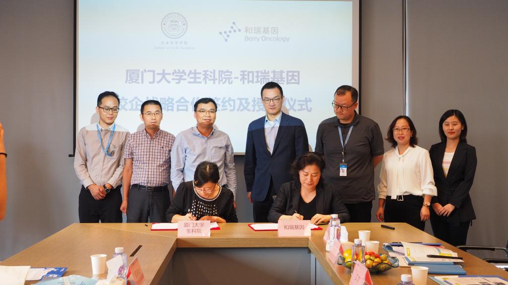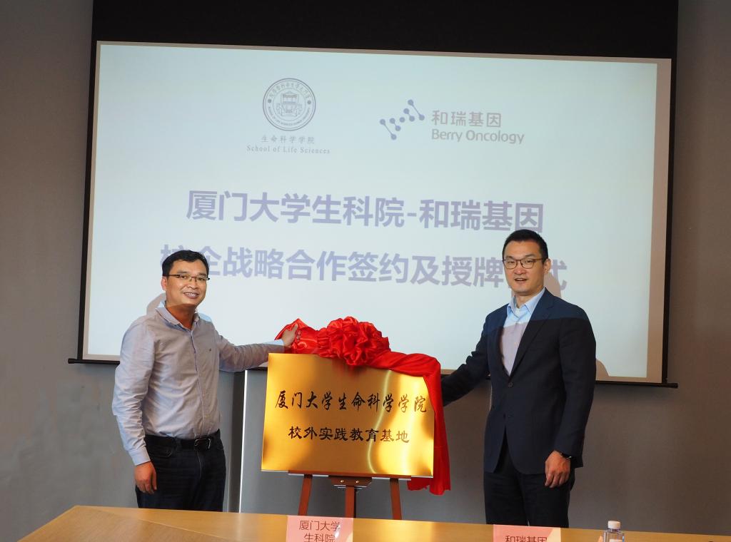 葛学凤副书记与和瑞基因福州运营中心总监张晶代表双方签订了《厦门大学生命科学学院校外实践教育基地协议书》。
