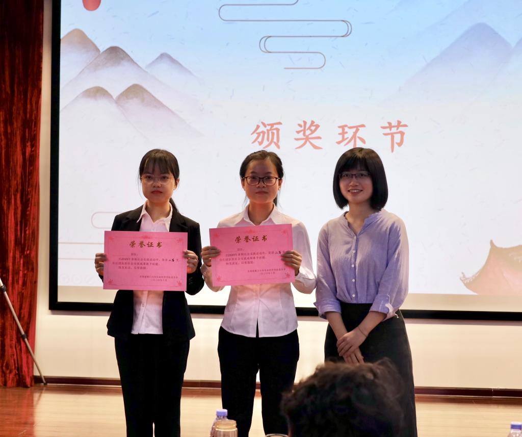 最终本次大会共评选出一等奖1名,二等奖2名,三等奖4名,优秀奖6名。其中,贫凡之梦实践队荣获一等奖;包虫病科普队、万众医心实践队获得二等奖;东西南北中队、“厦襄”实践队、通“蚊”达理实践队、一厦南音实践队获得三等奖;其余队伍获优秀奖。江子扬老师、周怡昕老师和各位嘉宾分别为他们颁奖并合影。