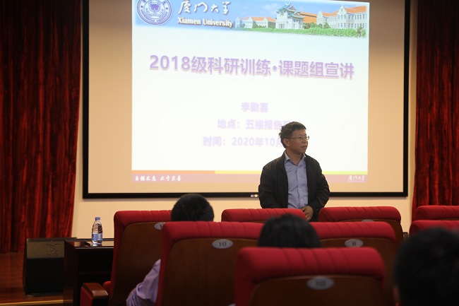 《科研训练》作为我院本科人才培养最为重要的实践训练课程,是师生间加深相互了解、培养学生专业兴趣、帮助学生树立学术志向的一个重要平台。我院素来高度重视《科研训练》,为切实提高学生的科研能力和水平,在2018级科研训练即将开始之际,我院于10月24日、25日开展2020年2018级“科研训练•课题组宣讲”。活动在厦门大学翔安校区黄朝阳楼举行。