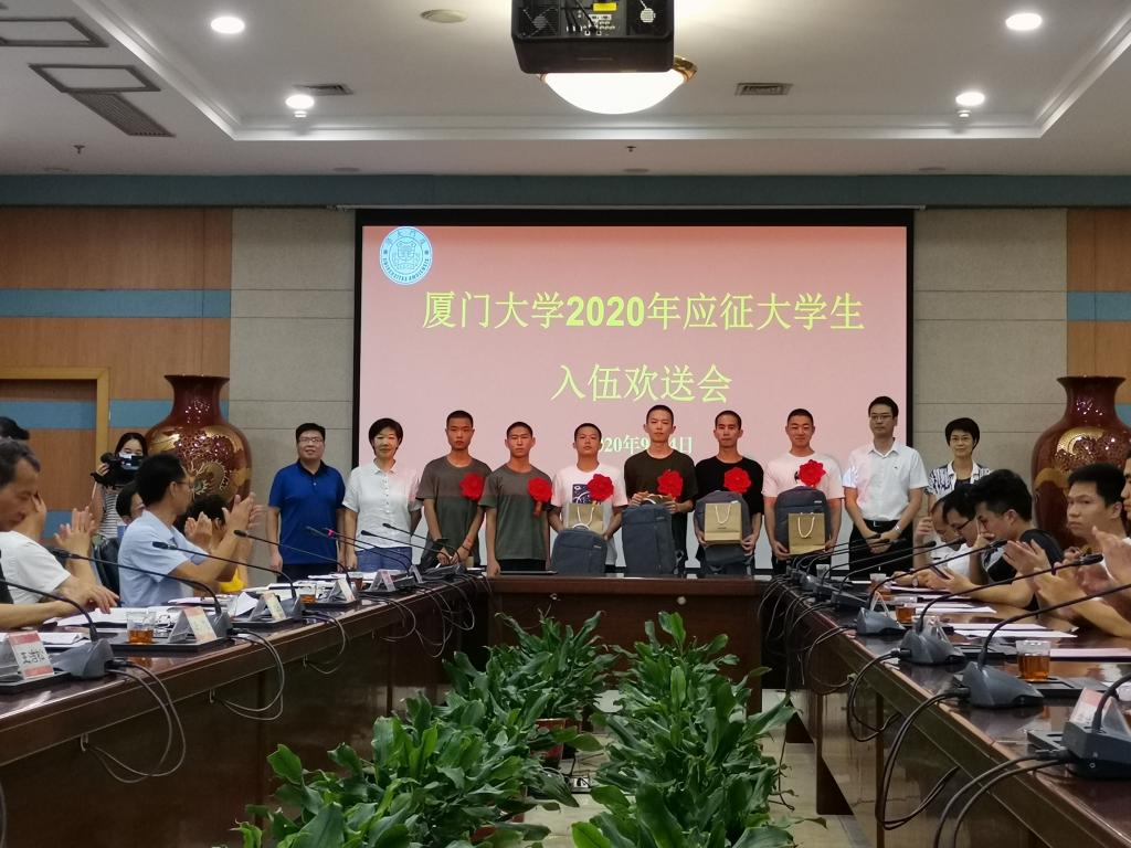 9月4日,厦门大学2020年秋季应征大学生入伍欢送会在思明校区主楼215会议室举行。校党委副书记赖虹凯,陆军驻厦门大学选培办主任王飞,人民武装部、学生工作部部长李峰及相关学院领导出席会议。学生工作部(处)副部(处)长高斌主持会议。