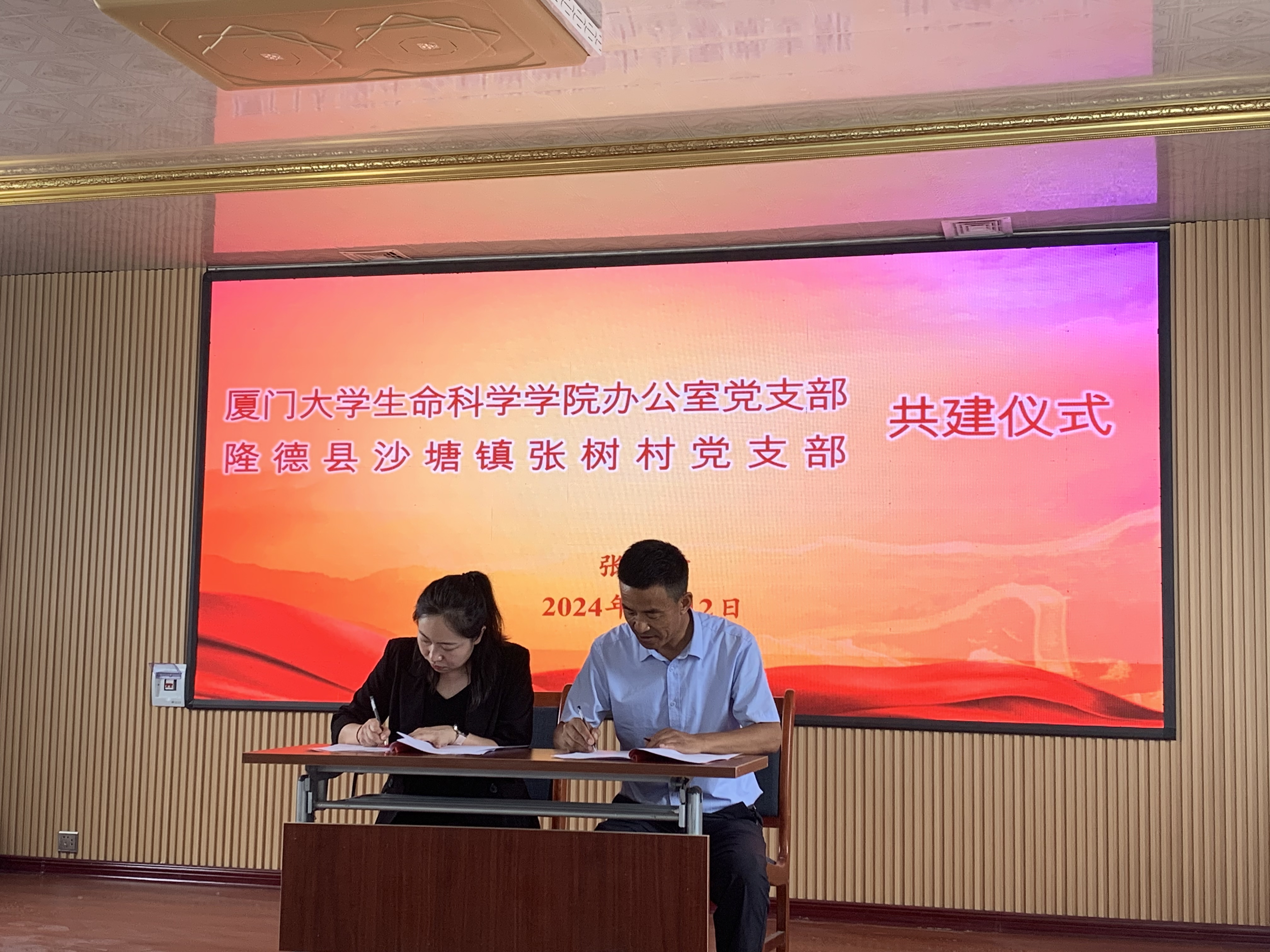 在张树村,生命科学学院办公室党支部与隆德县沙塘镇张树村党支部举行了共建仪式,吴佳蓓和张建龙分别作为支部代表签订了共建协议。双方就搭建“党建+教育”“党建+实践”“党建+服务”的“党建+乡村振兴”合作模式达成了共识,希望通过加强校地党组织共建,进一步推动生命科学学院办公室和张树村的合作深化、资源共享和协同发展,以党建工作引领乡村振兴。吴佳蓓表示,此次共建是双方进一步深化合作的良好开局,希望未来充分发挥结对双方党组织的自身优势,定期交流党建工作经验,共享党建工作信息,开展结对共建活动,探索创新基层党建工作方式,实现组织力共同提升。