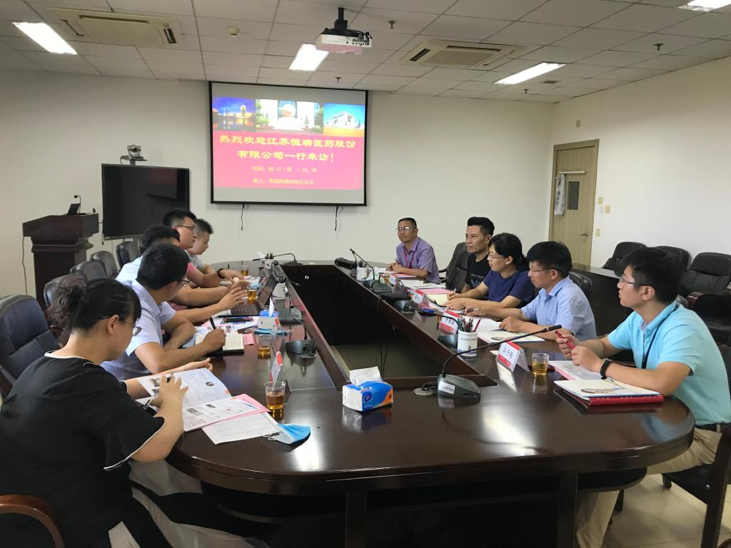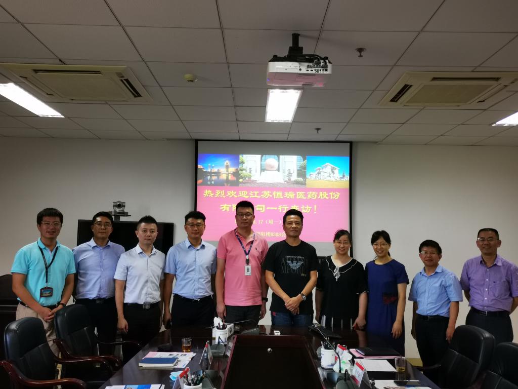 8月17日14:30,江苏恒瑞医药股份有限公司招聘中心经理祖楠、人力资源经理黄斌一行来访我院进行合作洽谈。学院副院长李博安、李勤喜,党委副书记葛学凤等在学院B308会议室与来宾会谈。
