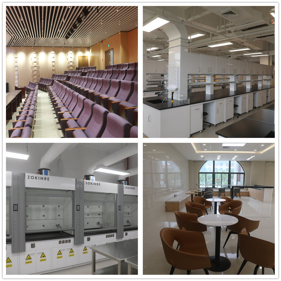 细胞应激生物学国家重点实验“跃进楼”主要由郭跃进先生个人捐资筹建,于2020年7月正式投入使用。大楼建筑面积10000平方米,一层建设有全面开放共享的大型仪器平台,为高水平教学、科研提供技术支撑和保障。此外,还设有1间能够容纳150人的学术报告厅,1间可容纳50人的小会议室以及4间访问学者办公室,可以定期邀请国内外知名学者讲学,承办高尖端学术报告,推动国重室与外界的学术交流。大楼二至五层为开放式的公共实验区,共可容纳32个课题组,并设有多个休息讨论区,鼓励国重室内部的交流合作。“跃进楼”的建成为细胞应激生物学国家重点实验室引进一流人才提供了必要的硬件保障,有力地促进了国重室的进一步发展。
