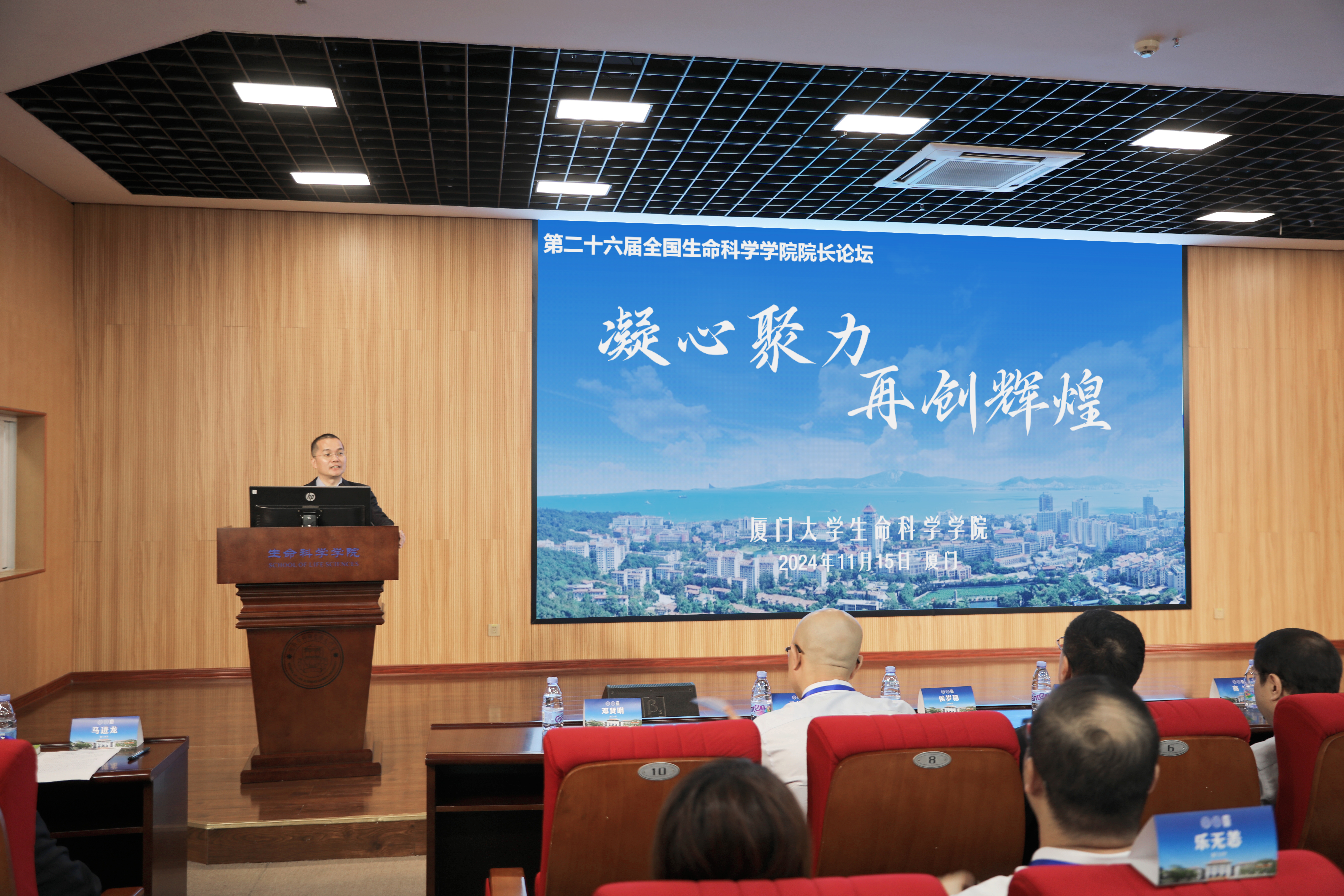 为落实教育科技人才“三位一体”战略部署,进一步深化和推动生命科学领域的学科建设和学院发展,11月14日至16日,第二十六届全国生命科学学院院长论坛在厦门大学生命科学学院举办。来自全国70余所高校的生命科学学院院长和参会代表,以及全国生命科学领域相关科研院所和期刊的专家学者共110余人齐聚一堂,聚焦“新时代的生命科学:科教融汇与产教融合的实践探讨”这一主题共话发展、共谋新篇。