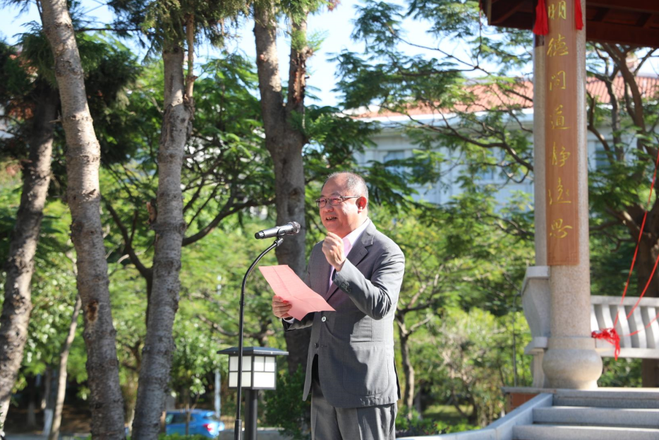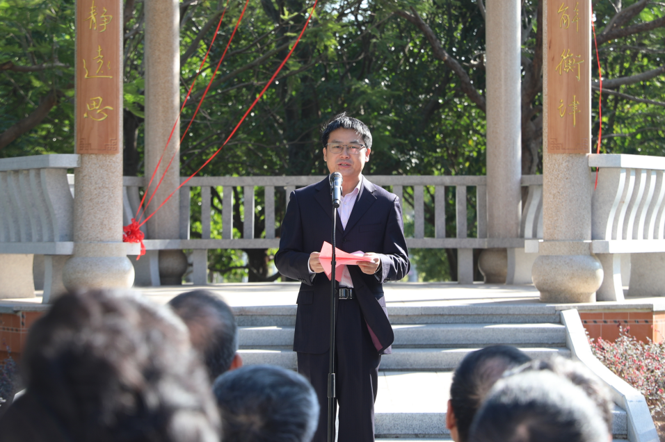 马进龙在致辞中向“知常亭”的捐建方和为其建成贡献力量的所有单位和人员表示衷心的感谢。他表示,生科校友长期以各种方式支持帮助母校母院建设发展,在厦大生物学科成立102周年之际,厦门院友会捐建“知常亭”的善举不仅为学院师生们打造了一方读书养性的好去处,还展现了厦大生科院的精神风貌和文化底蕴,更凝聚了校友们对母校母院的深情厚谊,寄寓了引领生科人不断追求卓越、勇攀高峰的美好愿景。