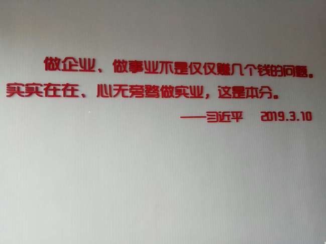 座谈会后,一行人在翁师德会长的带领下参观了合润涂料的实验室、厂房与办公区域。在实验室和办公区域中粘贴着“凡事有交代,件件有着落,事事有回音”、“事前准备充分,事后记录完整”等标语,充分反映了合润涂料细致、高效、负责任等企业文化。在办公区域最显眼的位置,粘贴着习近平总书记参加十三届全国人大二次会议福建代表团审议时说的话:“做企业、做事业不是仅仅赚几个钱的问题。实实在在、心无旁骛做实业,这是本分。”翁师德会长说,习近平总书记这一番话,正是他做企业的初心,是对他、对合润涂料的激励。