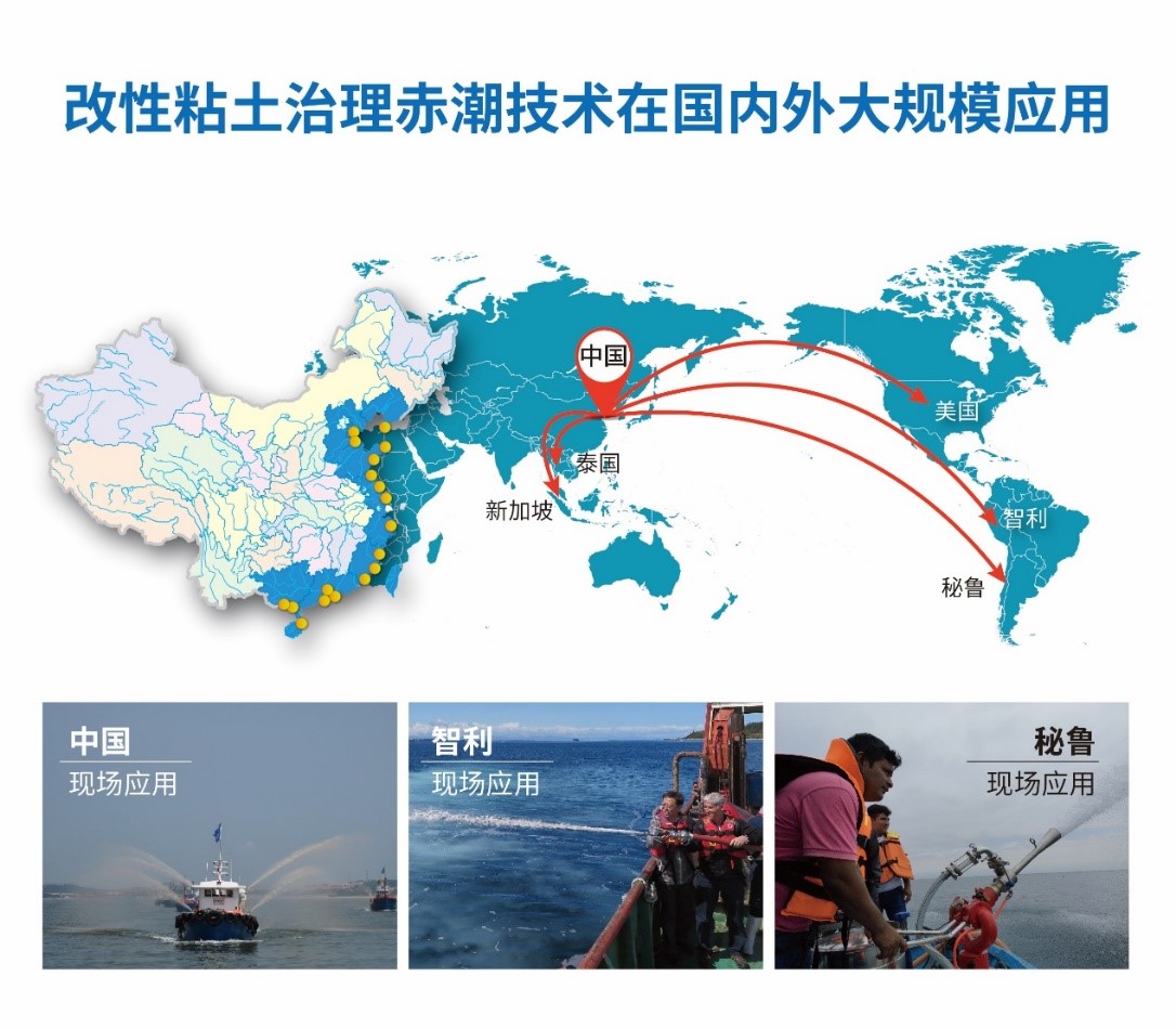 图:改性粘土治理赤潮技术在国内外大规模应用