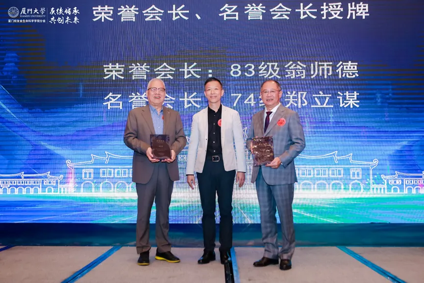 分会第三届会长黄国荣致辞。他表示自己很荣幸能接过学院厦门校友会的接力棒,在校友们的共同努力下,厦门校友会取得了许多丰硕的成果,如同一座桥梁连接了校友们的回忆与梦想。未来厦门校友会将继续秉承“服务校友、回馈母校”的宗旨,为校友们提供更多合作与交流的机会,促进母校母院各项事业繁荣发展。