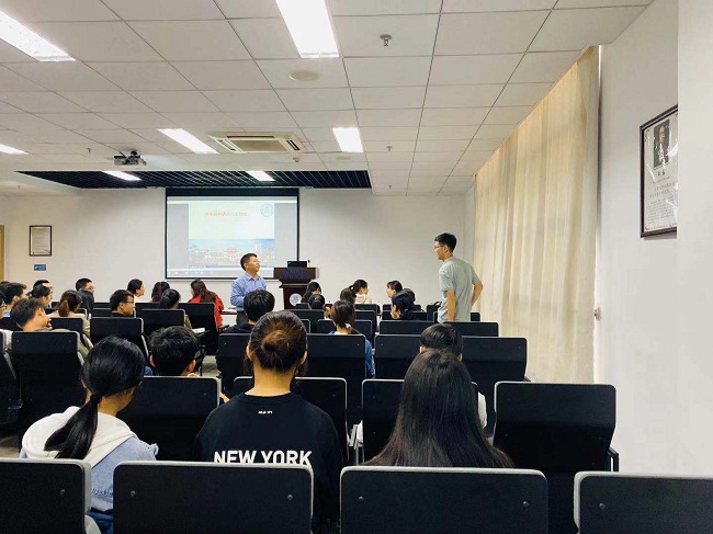 接着,葛郝锐老师结合学院“不忘初心、牢记使命”主题教育,提醒同学们不忘初心,时刻谨记“从哪里来”,不能忘了“根”,不能丢了“本”,应永葆家国情怀,坚持立德修身,坚定“向何处去”,在砥砺实践中自觉追梦、自信圆梦、自强筑梦,有担当、敢作为,做新时代的奋进者,开创美好未来,引领时代风骚。