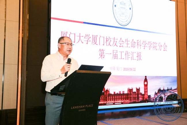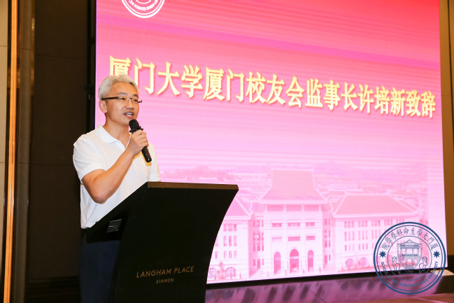 许培新在致辞中介绍了厦门校友会的建设情况和取得的成绩,祝贺生命科学学院分会换届大会圆满成功,号召广大校友共同努力为母校的发展贡献智慧和力量。