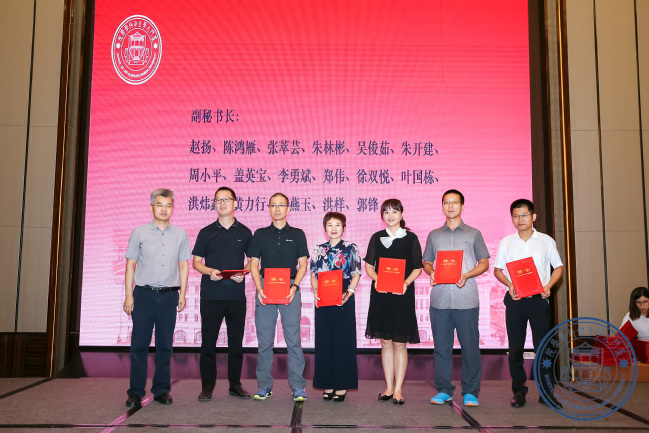 大会举行了授牌仪式。张明智向校友分会第二届会长翁师德授牌,会长向第二届监事长、常务副会长、秘书长、常务副秘书长授牌,第二届校友分会机构主要负责人向第二届理事会机构其他成员颁发聘书。翁师德宣读了分会第二届顾问名单,并向到场的顾问颁发了聘书。