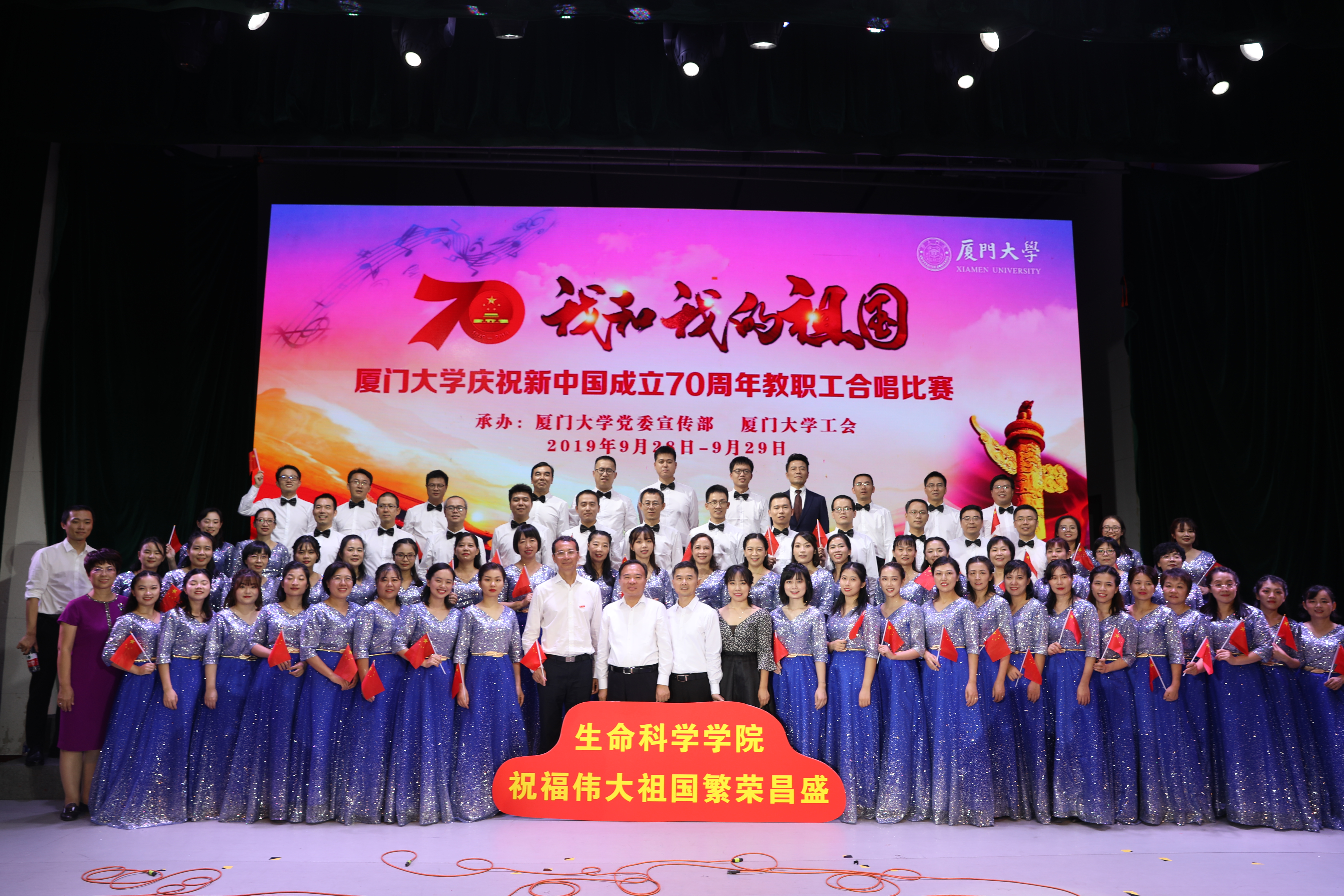9月28 - 29日晚,建南大礼堂歌声嘹亮,37支教职工队伍,用歌声唱响了对祖国的爱和祝福。我院倒数第二压轴登场,以《在太行山上》和《我的我的祖国》获得了全校第7名、二等奖的好成绩!