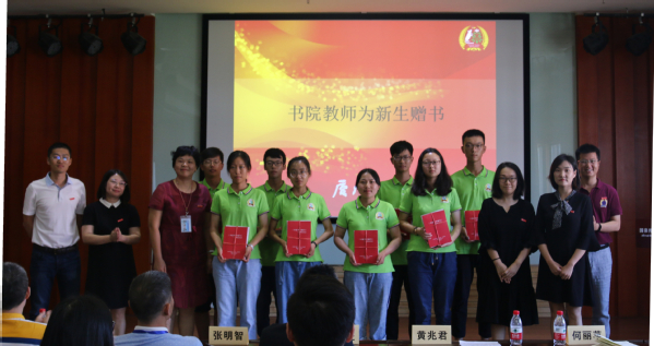 随后,典礼进行了“教师赠书”环节。公共卫生学院党委副书记黄兆君,医学院党委副书记何丽苹,药学院团委副书记范荣、医学院辅导员谢婷玉、生命科学学院辅导员江子扬、公共卫生学院辅导员赵煜为书院新生代表赠书。
