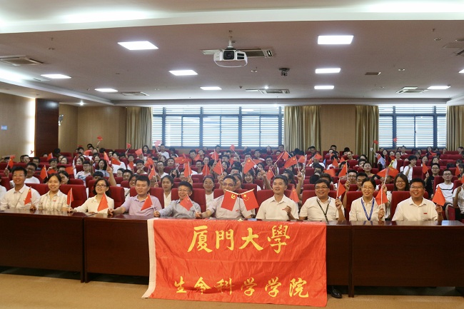 “我和我的祖国,一刻也不能分割。无论我走到哪里,都流出一首赞歌。”齐声合唱的旋律,院内飘扬的国旗,书着贺语的大屏,在新中国迎来70周年华诞之际,生命科学学院处处洋溢着与祖国母亲同欢喜的振奋气息,生动展现了生科人昂扬向上、团结奋斗的精神风貌。