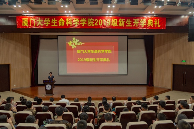 9月16日中午,我院在翔安校区德旺图书馆大报告厅举行2019级新生开学典礼。学院党委书记张明智,院长周大旺教授,副院长左正宏教授、李博安教授、李勤喜教授、邓贤明教授,党委副书记葛郝锐、葛学凤,教师代表张宸崧教授,本科2019级班主任,学院行政办公室和团委办公室的老师们出席了本次典礼。典礼由学院团委副书记吴佳蓓主持。
