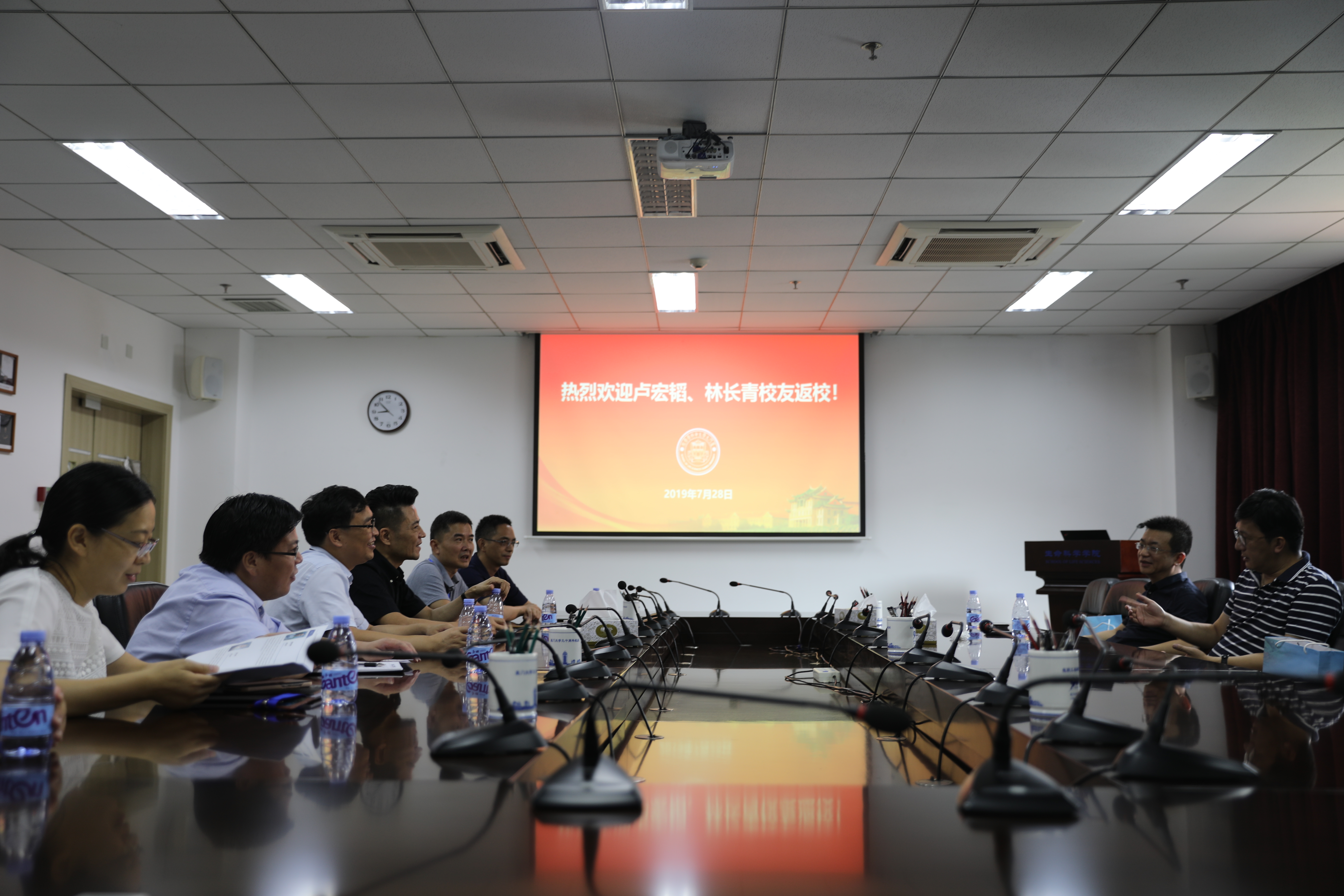 7月27-28日学院召开科研年会,首次设立“杰出校友”论坛,邀请科望(上海)生物医药科技有限公司共同创始人、首席科学官卢宏韬校友,北京热景生物技术股份有限公司董事长林长青校友返校做报告。28日上午,学院在B403会议室举行座谈会,张明智书记、周大旺院长、副院长李博安、左正宏、李勤喜、副书记葛郝锐、葛学凤等参加座谈。