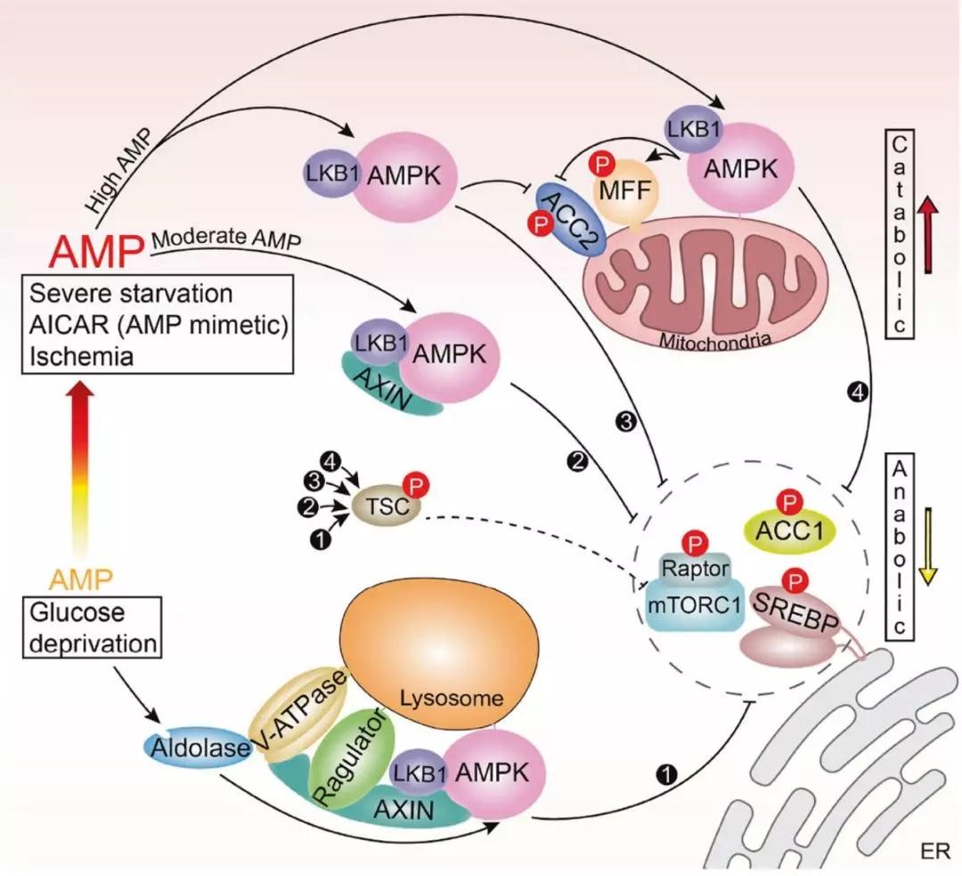 从生理角度上设计靶向AMPK的策略需要基于坚实而系统的对体内AMPK调控和功能的研究基础,而AMPK存在于细胞质、溶酶体、线粒体和细胞核等多个区域,这些定位于不同区域的AMPK如何协同调节,就涉及到了时空调控的问题。